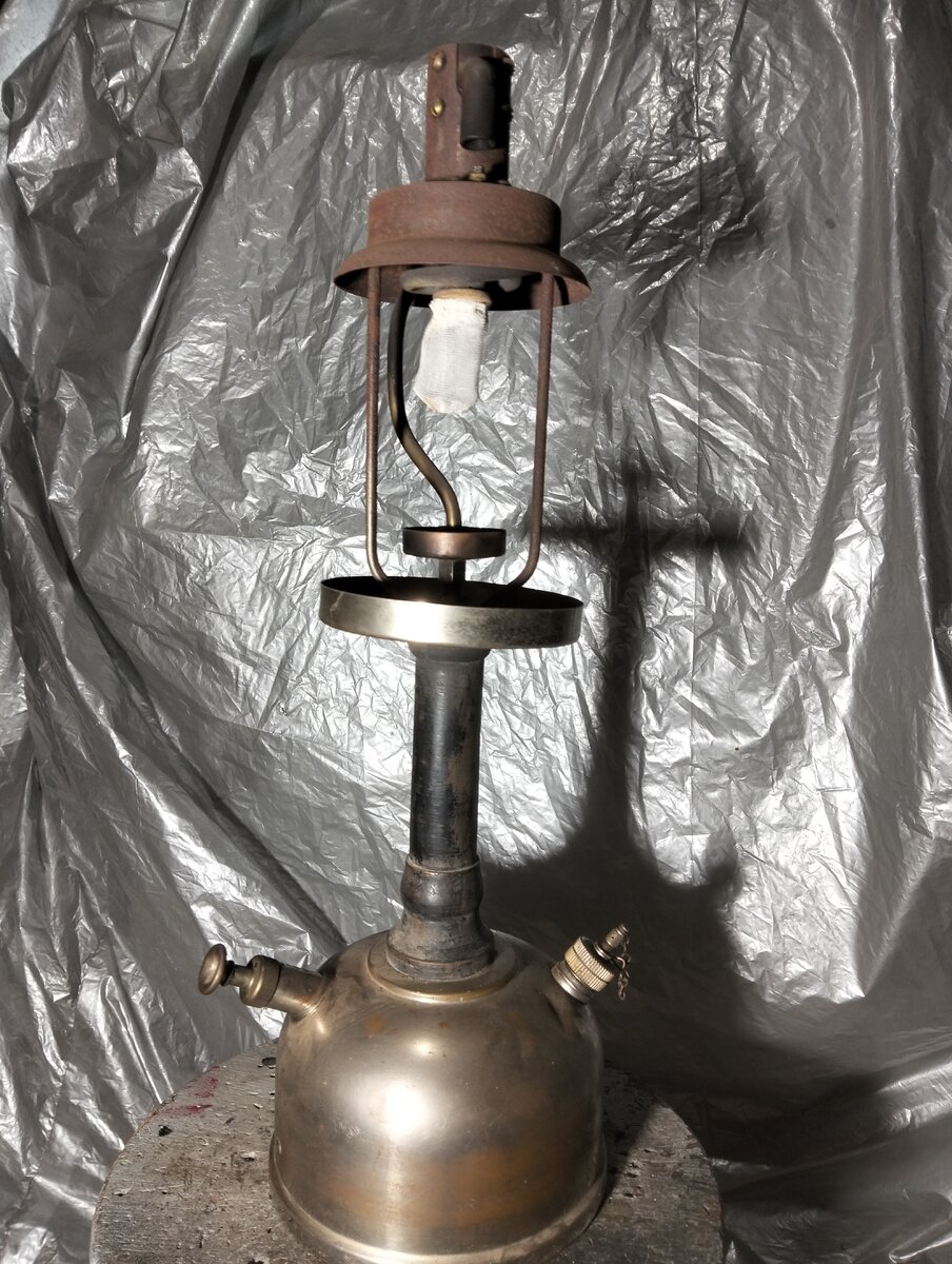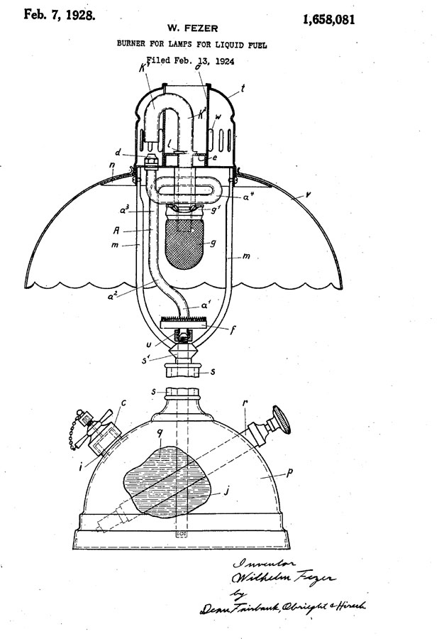 I think this lamp is all Standard Licht made, both burner and tank. The upper part with burner is from the Standard Licht 1000 table lamp combined with the tank/font from a Standard Licht 1060 table lamp. This combination has not been found in the Standard Licht papers, but Neil gives a hint that this Standard Licht table lamp combination was a possibilty, as he says in his PLC ..... Attached you find Standad Licht catalogue images 1931 (Neil) and the 1924 patent of Fezer. /Conny