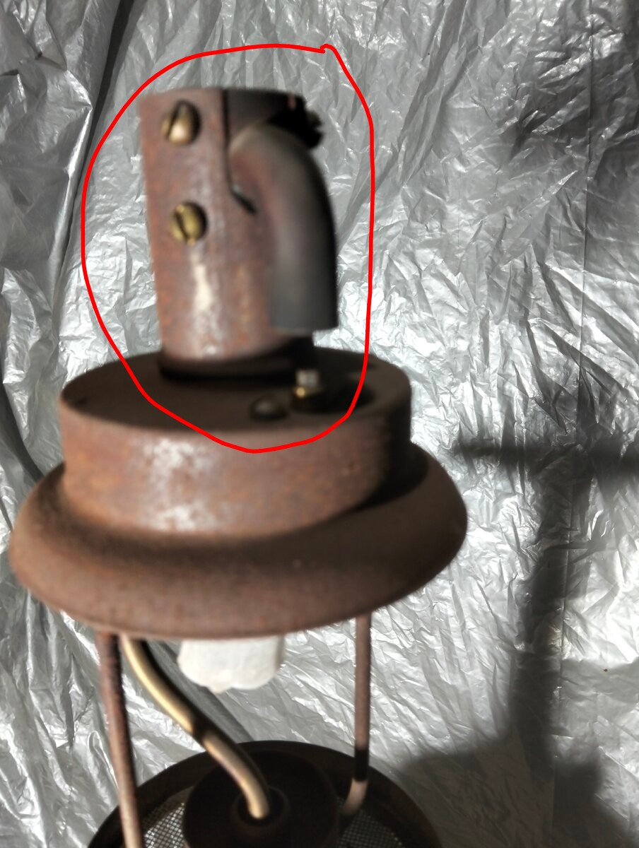 @irineu With that upper burner part with a globe shade holder ring I think your lamp originally looked like this ...... Here are lamp conversion parts for the Phoebus 40 lamp and similar parts are also the ones used on your lamp ..... /Conny