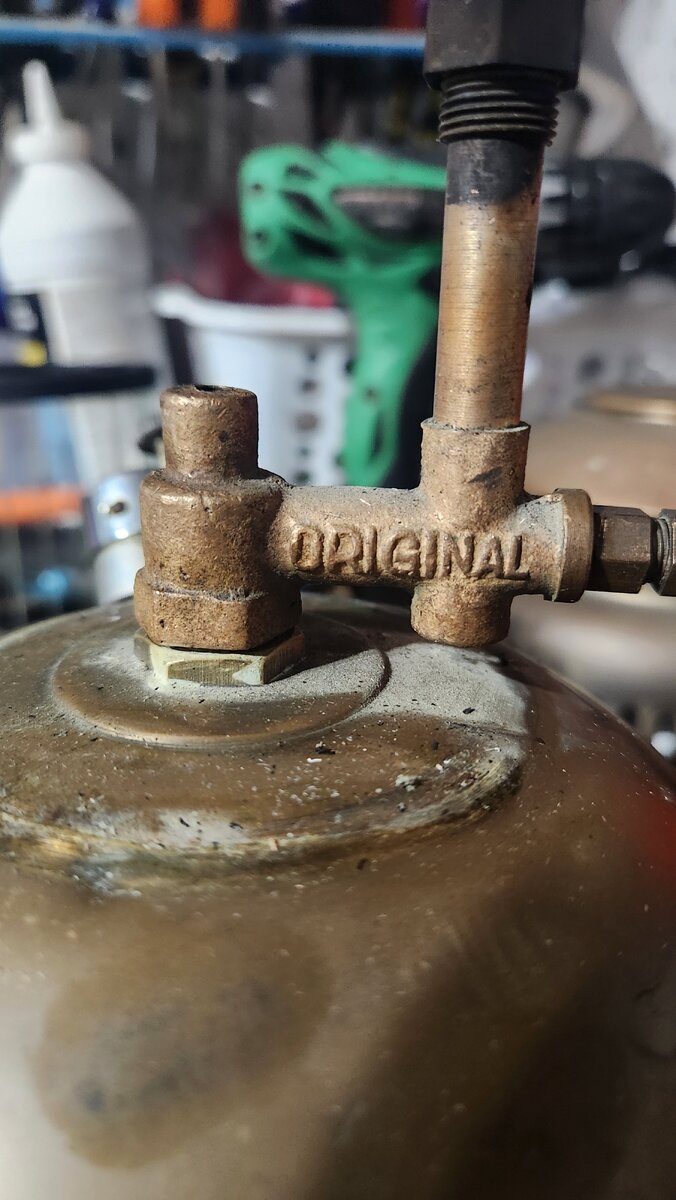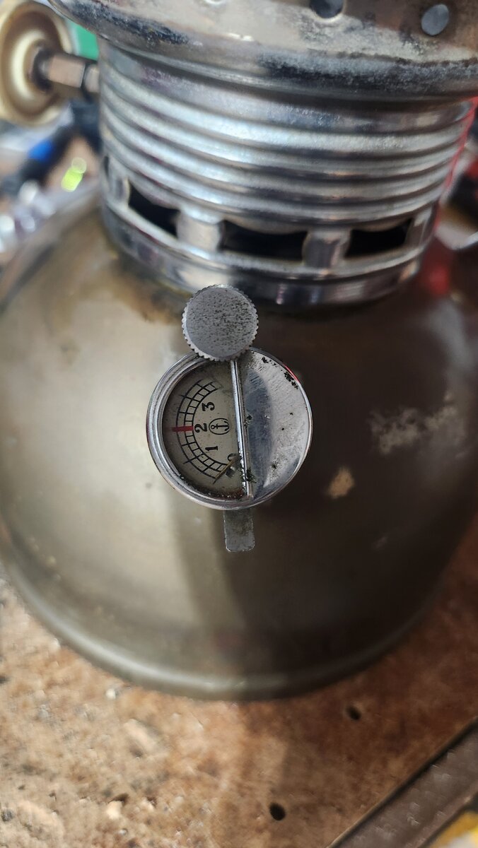 I bought this brass gem locally for $60 and have never seen anything quite like it. It's construction is almost identical to a petromax without the rapid ignitor. It has a globe made up of slender pieces of glass that is the most intriguing and I really want to see how it projects light It has a logo on the top vent. The word master stamped on the generator and on the priming cup. The check valve is shot and the needle is broken so I'm trying to match up replacement parts to get it burning.