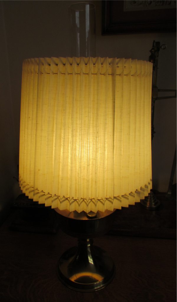 Here is my latest venture to the dark side (No pun intended about light output). £15 from the local carboot, perfect chimney, good base and quite a nice original (I believe) pleated shade. It's very delicate but it has survived very well.