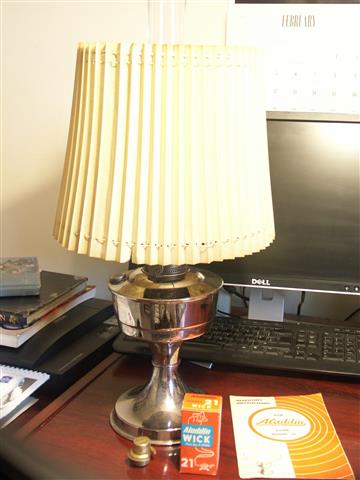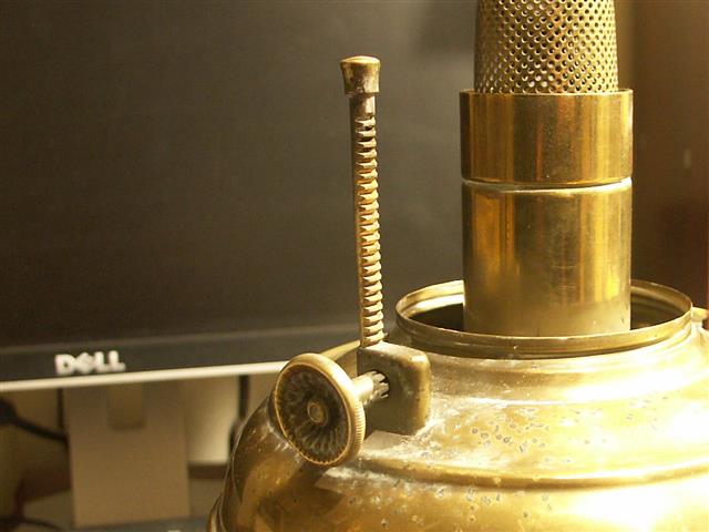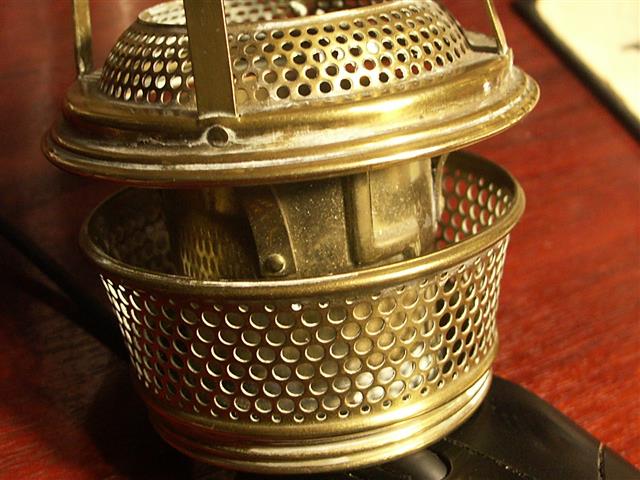 Nearly done: - Apart from a correct chimney, I need a wick and the central air gauze needs a flame spreader. The circular indent is there, but it does seem to need a spreader It's a disease, it can't be helped . . . . This is as the lamp has been purchased from the junk shop, no cleaning done. Marked down from £33 to £25 which is what I had to squeeze out my purse. It hurt too.