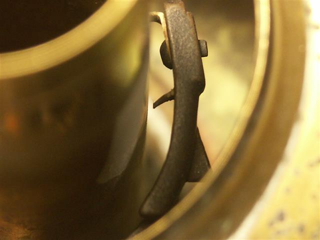 Thanks Martin, most useful would be the overall diameter and metal thickness if possible. Rangie, the Pigeon globe, gallery, and burners are available from Base Camp, fairly inexpensive too. The tricky part might be the wick winding mechanism. Mine has two spiked wheels within, but the shaft should be soldered in the wick tube. Mines adrift. The 'Inexplosible' part is down to the tank being stuffed with cotton waste - well not 'waste' as such, but cotton wadding. Vital that it is. If it's brass plate on tin check for pinholes, usually around the base. PS Thought I'd 'slipped up' on that B & H post! The jaws that grip the wick. Humph.