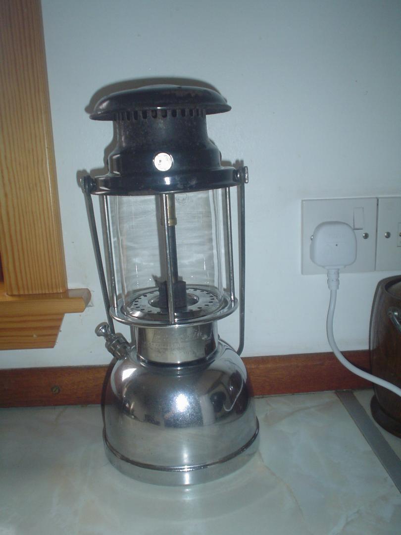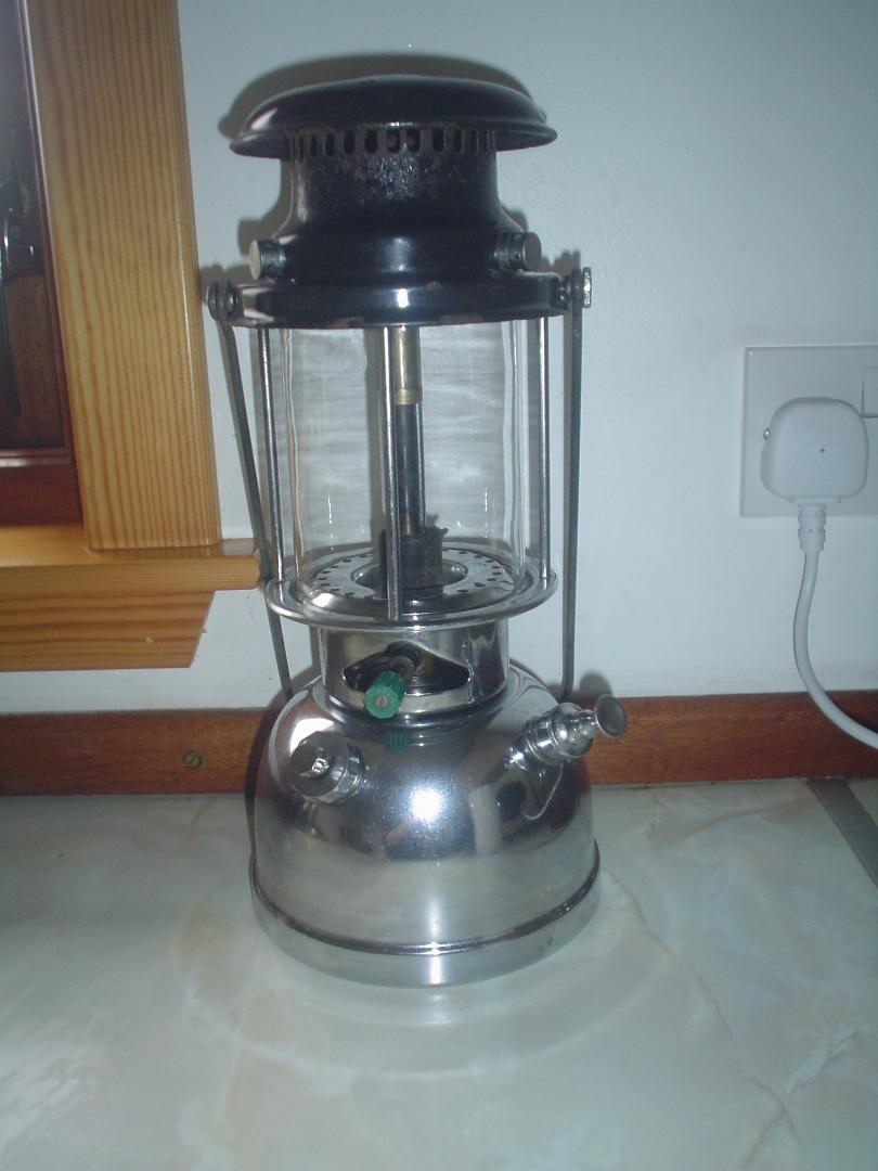 Thanks for the positive comments fellow lampers! I found the lantern on Ebay UK., and the buy it now price and the postage were reasonable. I spent about 3 hours yesterday afternoon restoring the lantern, first of all I dismantled it and then drained the dregs of the very old and stinking paraffin, then the dunk test and then the first clean up with white spirit and a soft cloth. Then the second clean with washing up liquid and water and a rough sponge, I repeated that process as often as required and I gave the tank a good rinse or three, but it was surprisingly clean. I had a control cock which was already fettled so I fitted it and that was also the case with the vapouriser, the chromed burner air buttons had been in storage for many years, perhaps over twenty years, it's difficult to recall precisely, but they have now been used. I'm pleased with the result of my efforts, however, I did not use the chrome polish which I have in the shed, perhaps that will improve the shine.