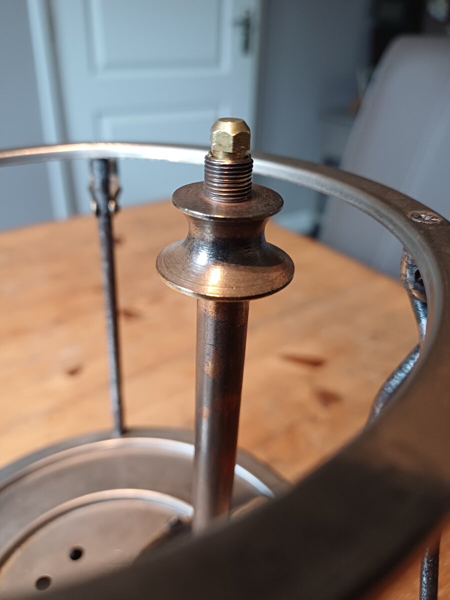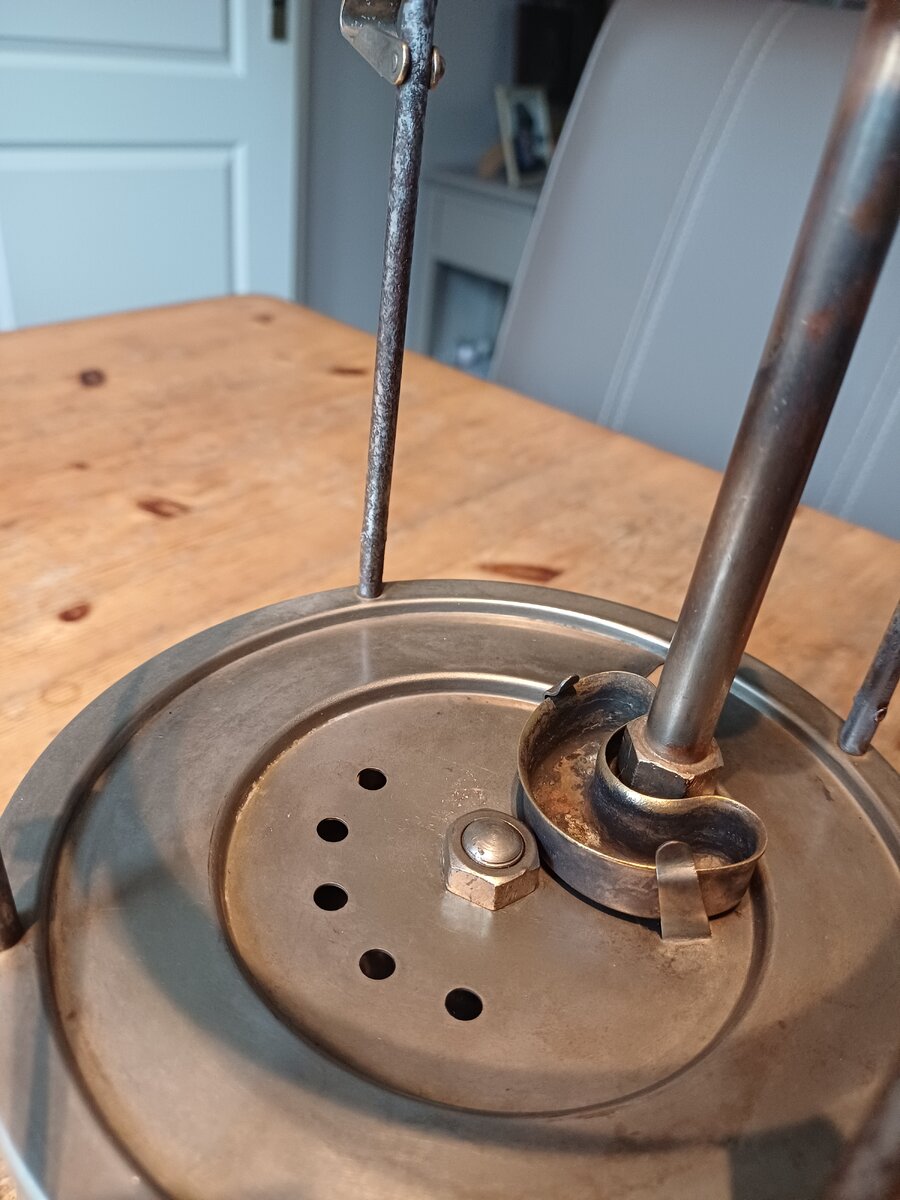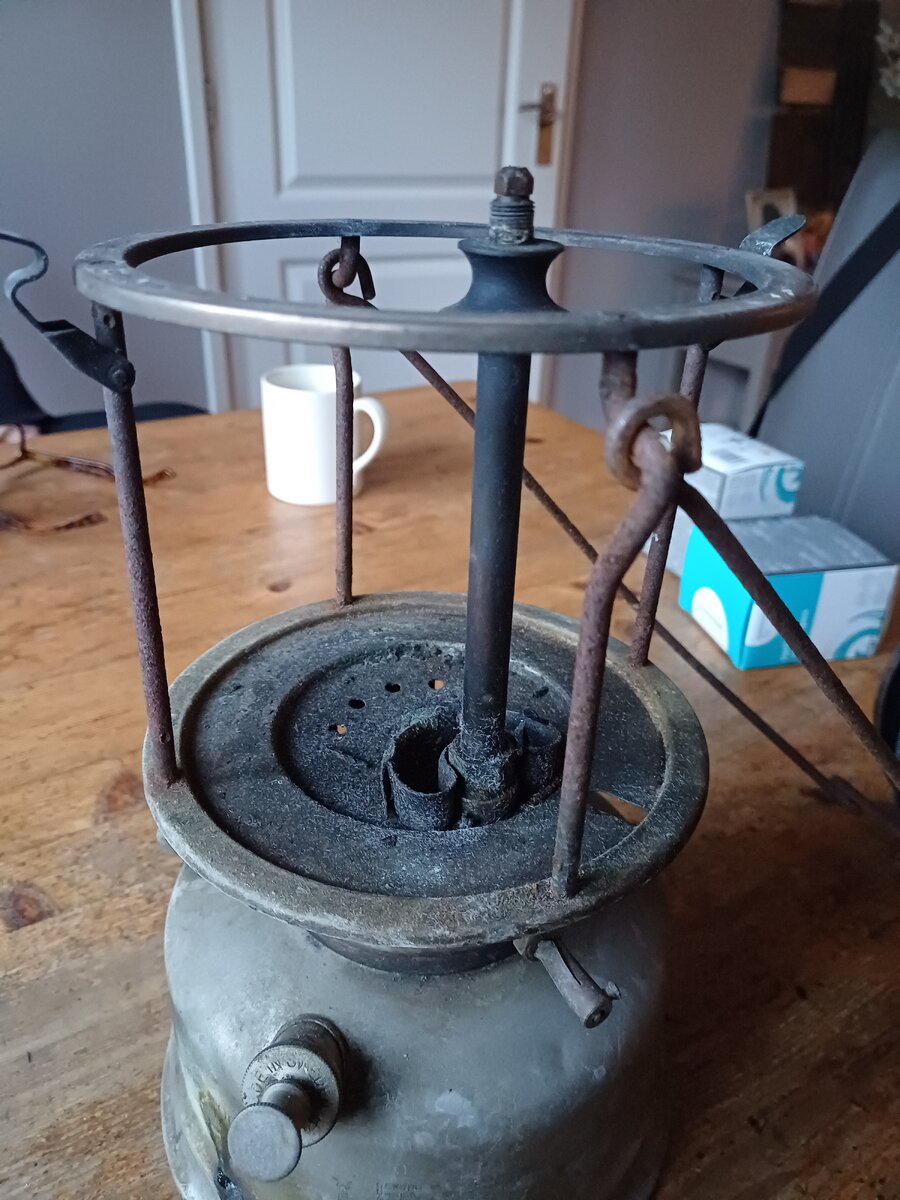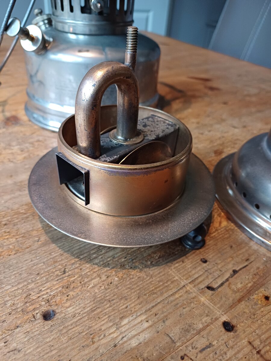 Here's my Radius 120. I found it a couple of weeks ago. The lantern was very dirty, lots of dust and old fuel remains. It cleaned up very nice. The only thing that was missing, is the knob for moving the needle up and down. I replaced with one that looks like the original. The globe is original, the brand name " Radius" is barely visible, but still there.