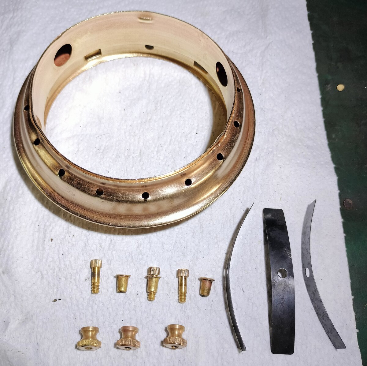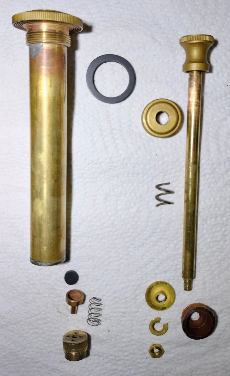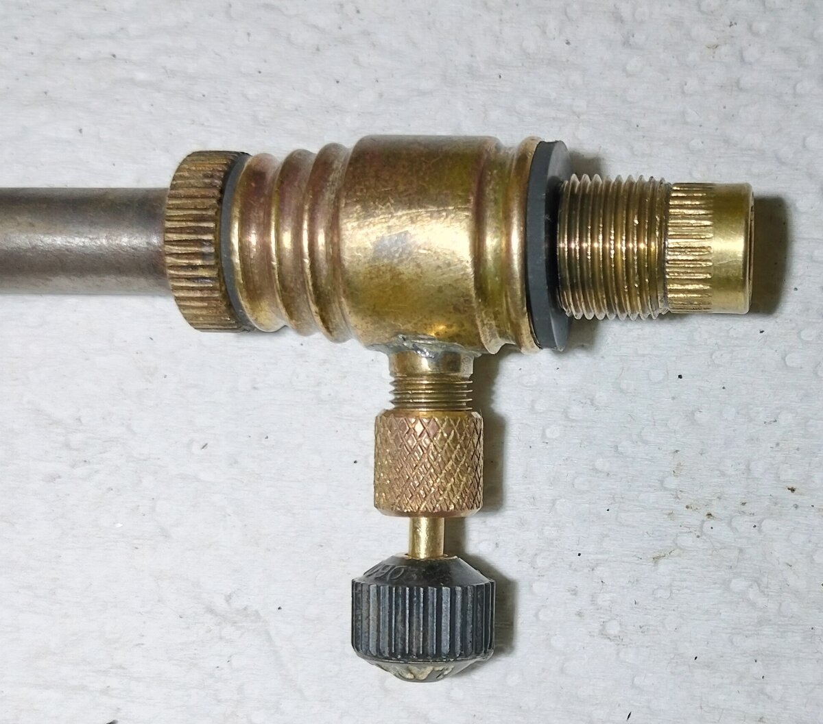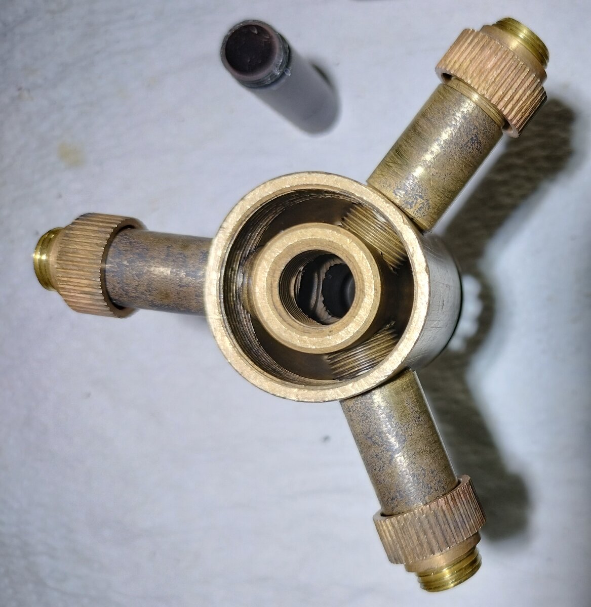 I found this lamp locally on Marketplace. The woman said it had been her mothers and had been in the home as long as she could remember. This lamp came with top and a bottom insect screen, which makes me believe it was originally fitted with a 182 globe as well as the “champagne” shade. It is designated TL 136/IP because it has the shade (making it TL136) plus a No. 182 globe and top and bottom insect screens (IP = Insect Protection). The burner dome is stamped PAT. No. 202485 The Vapouriser is stamped PAT. 524719-375977 As found