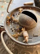 The fount is brass, not copper and was commonly painted gold. If painting, you need to make sure it is fuel resistant. Automotive paint or a fuel resistant enamel. There is a lot of discussions regarding paint. Search Results for Query: paint type | Classic Pressure Lamps & Heaters A question of paint | Classic Pressure Lamps & Heaters Note: the hood is vitreous enamel coated, not paint, and a commercially available paint, capable of withstanding the heat long term hasn't been found. If all the components are original, I would say early 1954. but it is possible a previous owner has replaced the cage with a later version or replaced the fount with an earlier version.